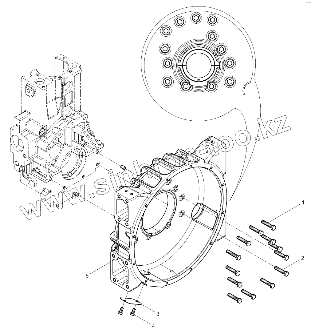 Каталог запасных частей к технике: Weichai WP10NG DHP10Q1667. Flywheel Housing Group