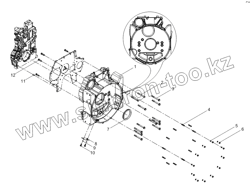 Каталог запасных частей к технике: Weichai WP12 375E40 (Евро 4). Flywheel Housing Group