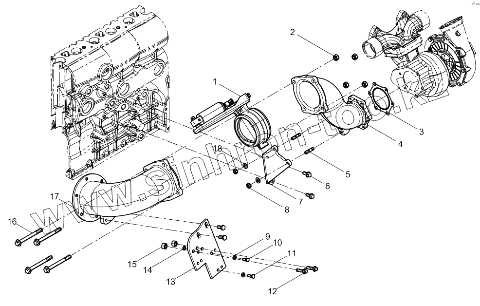 Каталог запасных частей к технике: Weichai WP12.375E50. Rear Exhaust Manifold Group