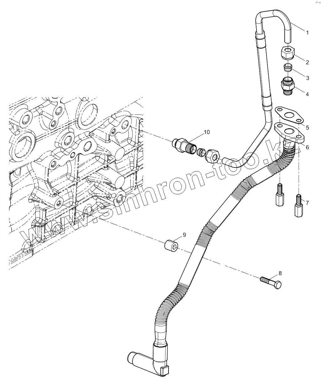 Каталог запасных частей к технике: Weichai WP12.375E50. Turbocharger Oil Pipe Group