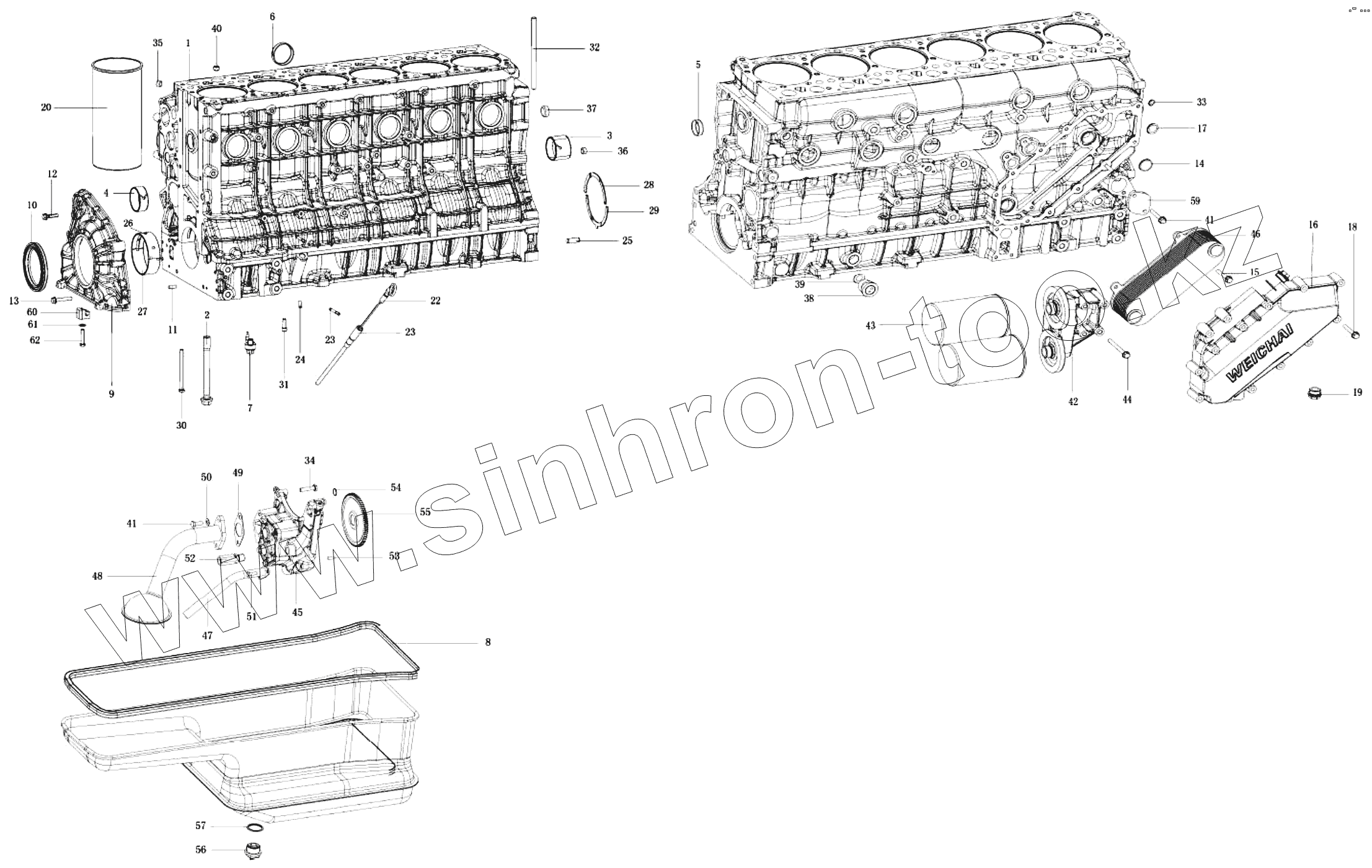 Каталог запасных частей к технике: Weichai WP12 (Евро 3). Корпус цилиндра