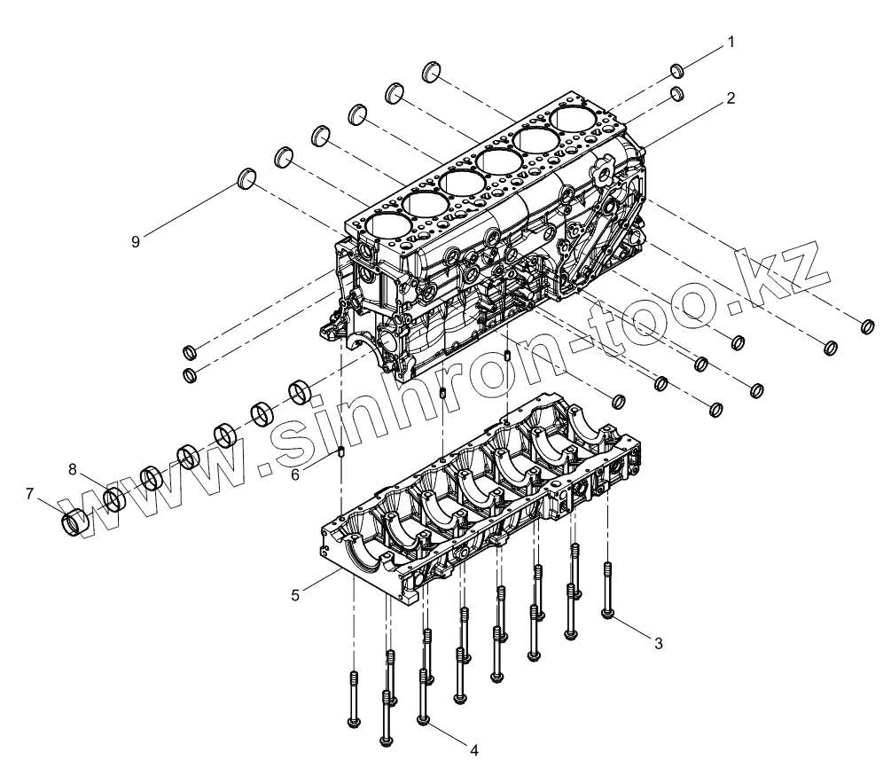 Каталог запасных частей к технике: Weichai WP12 DHP12N0219. Crankcase pre-assembly