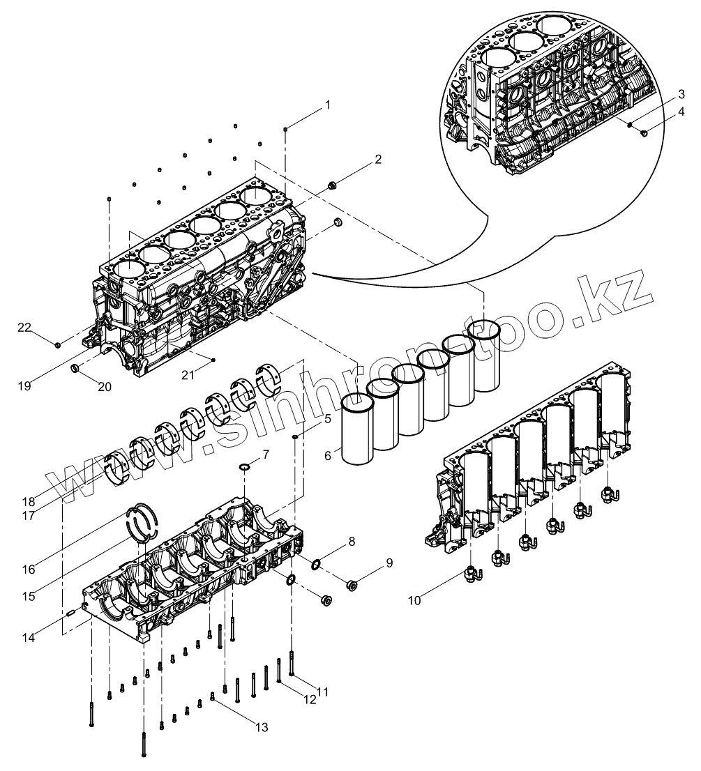 Каталог запасных частей к технике: Weichai WP12 DHP12N0219. Engine Block Group
