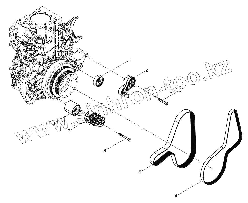 Каталог запасных частей к технике: Weichai WP12 DHP12N0219. Tensioner And Belt Group