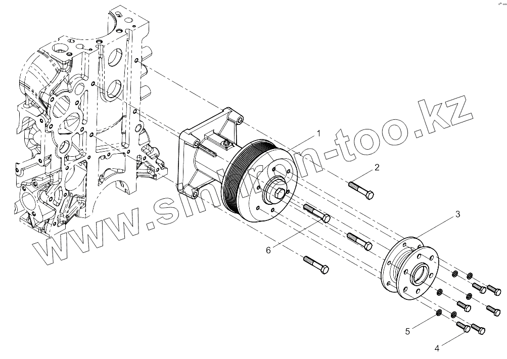 Каталог запасных частей к технике: Weichai WP12NG380E51. Fan Bracket Group