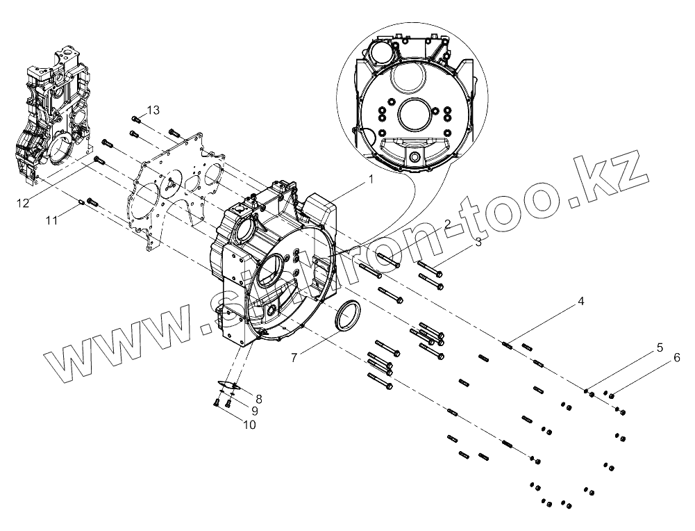Каталог запасных частей к технике: Weichai WP12NG380E51. Flywheel Housing Group