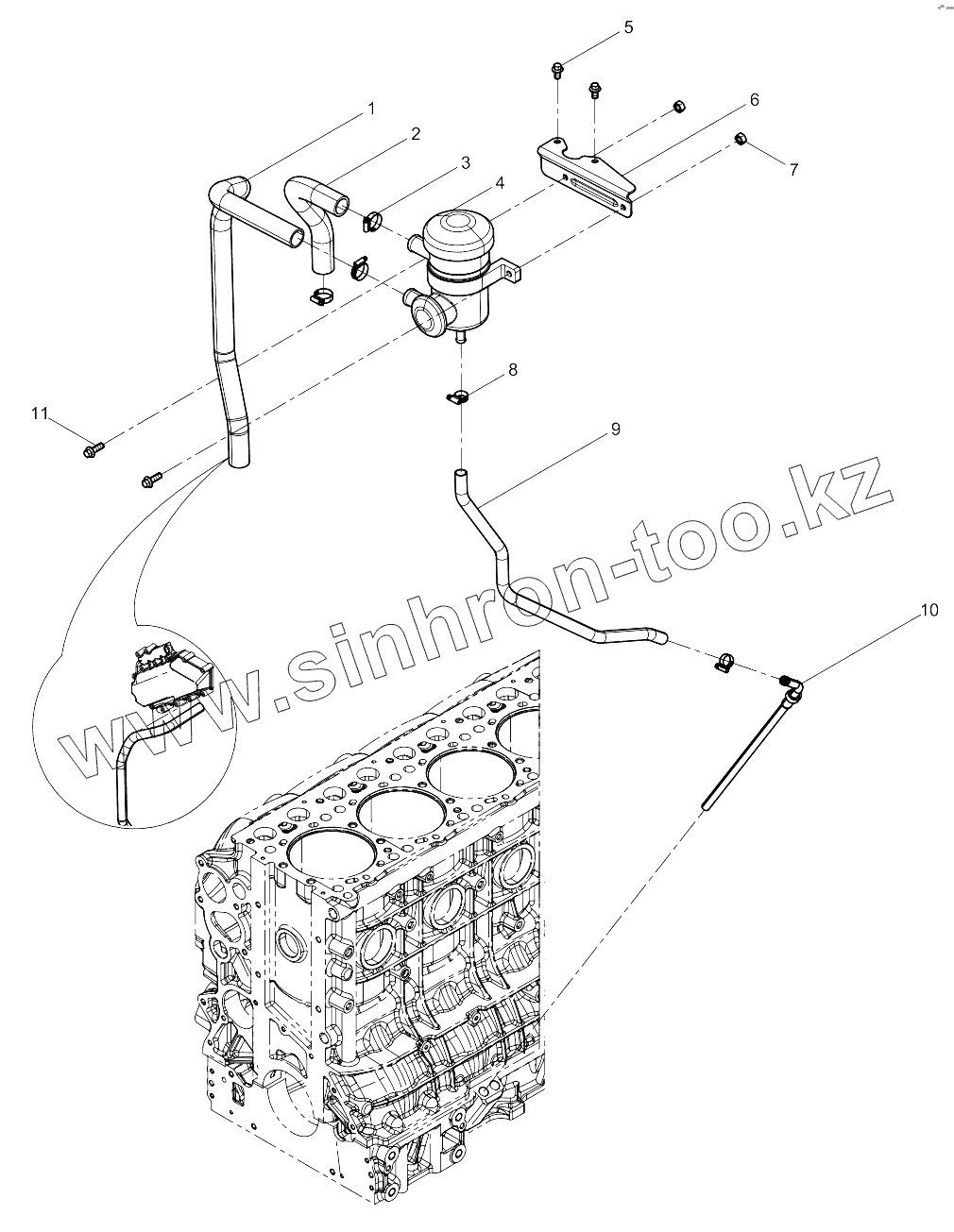 Каталог запасных частей к технике: Weichai WP12NG380E51. Oil-gas Separator Group