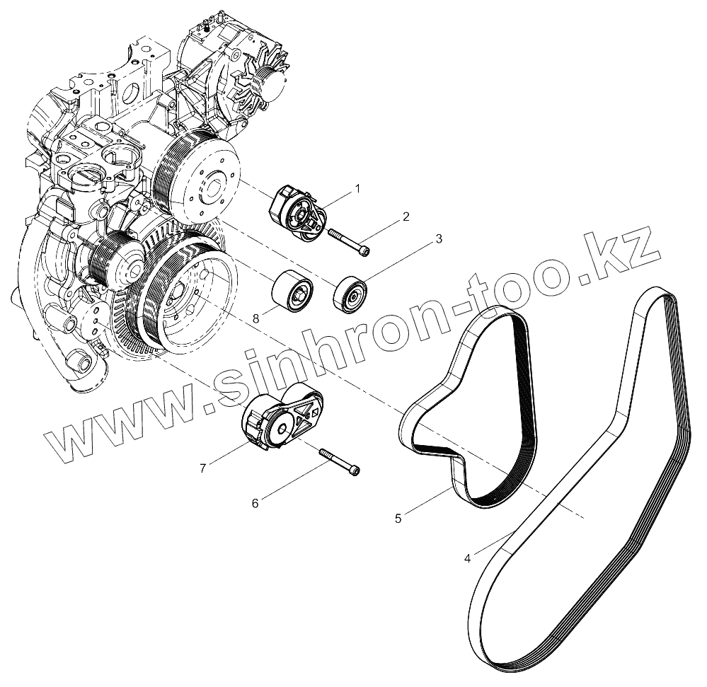 Каталог запасных частей к технике: Weichai WP12NG380E51. Tensioner And Belt Group