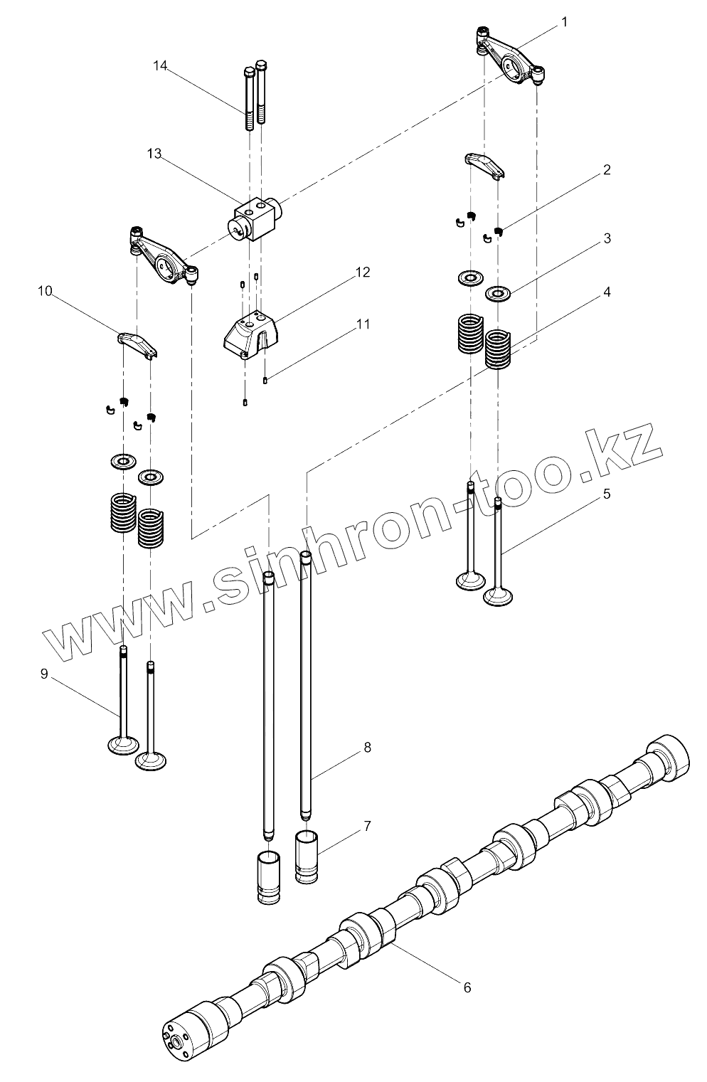 Каталог запасных частей к технике: Weichai WP12NG380E51. Valve Train Group