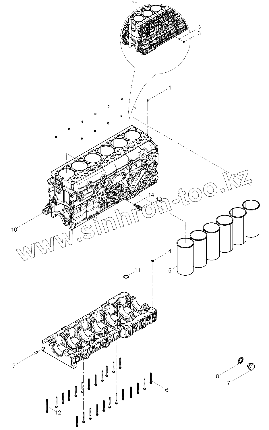 Каталог запасных частей к технике: Weichai WP13 DHP13Q0928. Engine Block Group