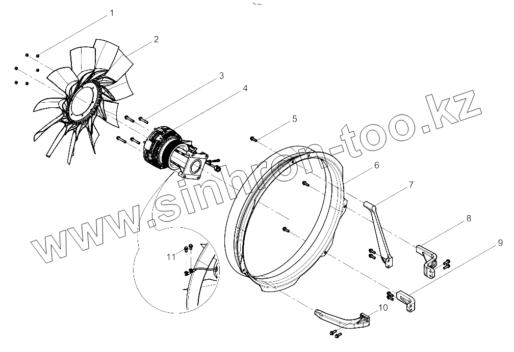 Каталог запасных частей к технике: Weichai WP13 DHP13Q0928. Fan and Hub Group