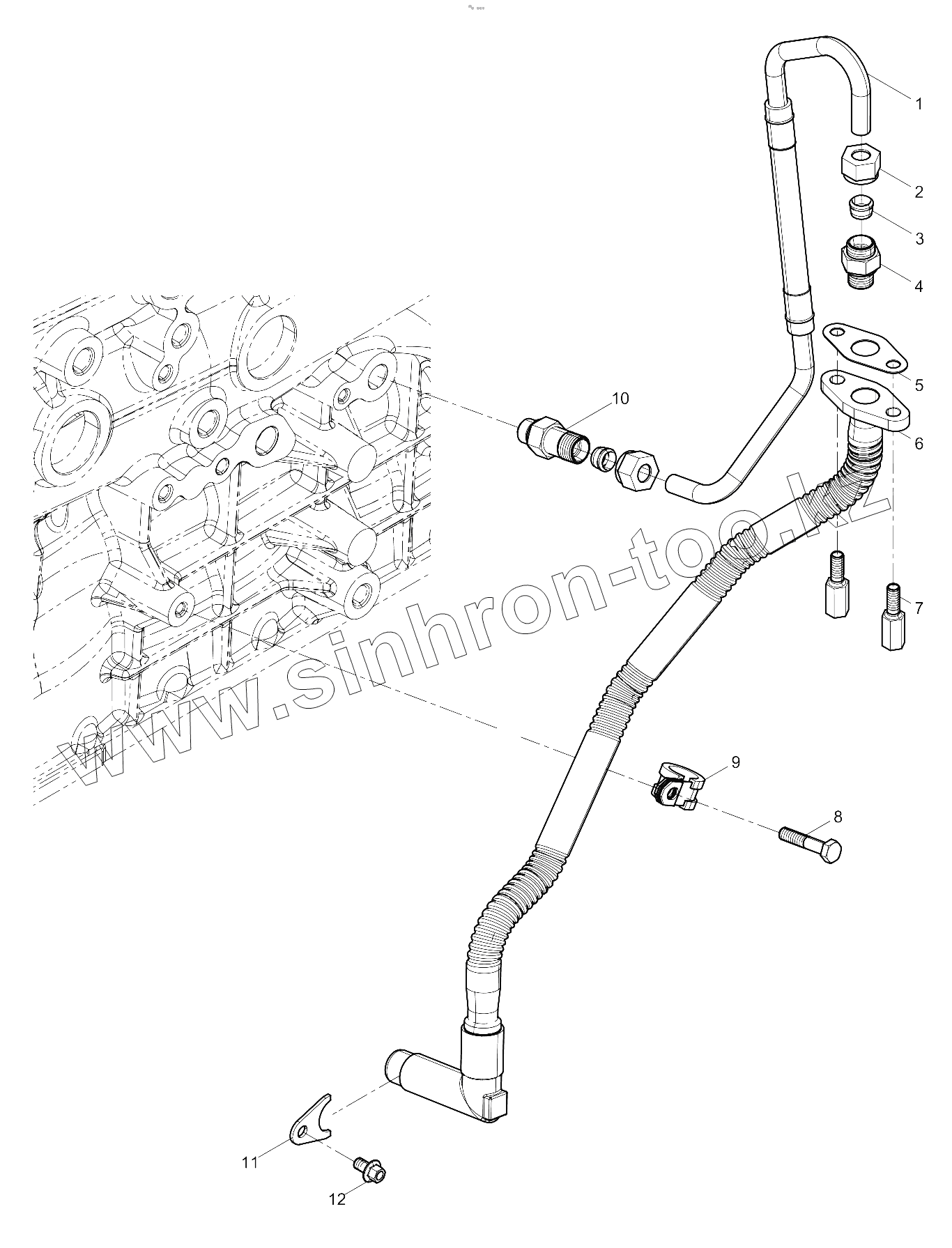 Каталог запасных частей к технике: Weichai WP13 DHP13Q0928. Turbocharger Oil Pipe Group