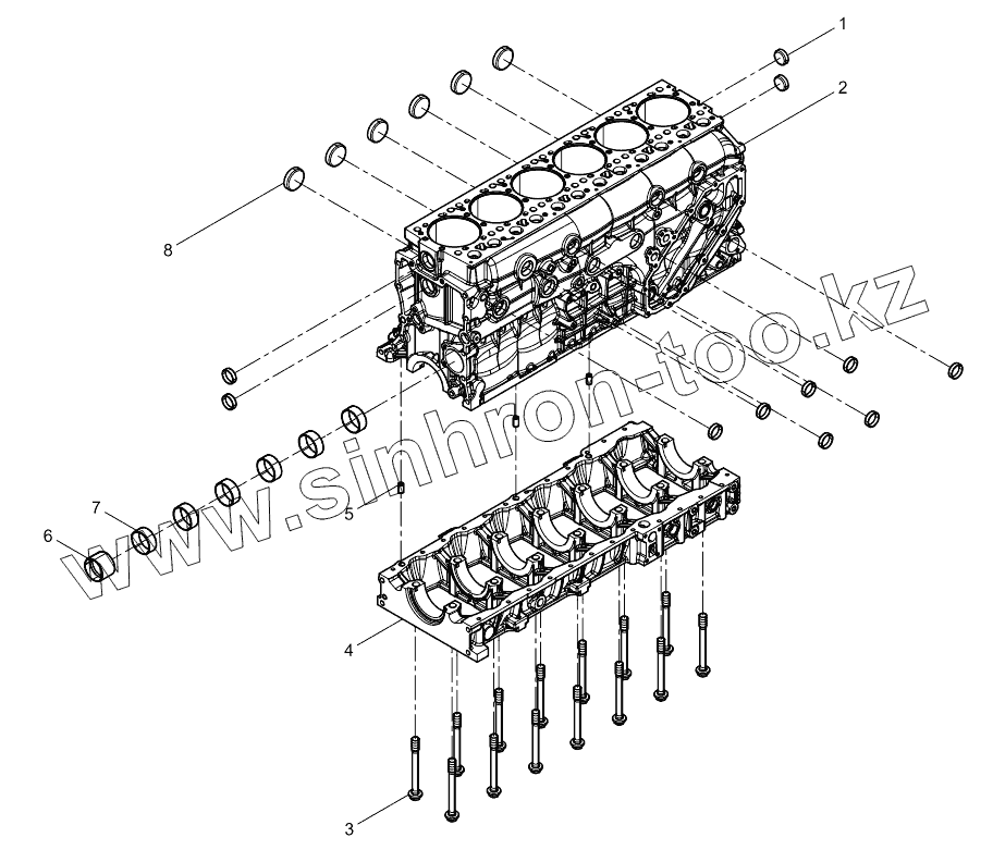 Каталог запасных частей к технике: Weichai WP13 DHP13Q3390. Crankcase pre-assembly
