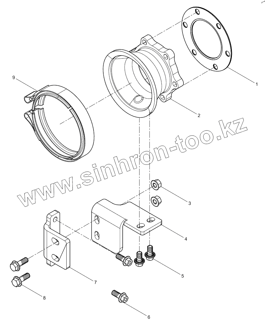 Каталог запасных частей к технике: Weichai WP13 DHP13Q3390. Rear Exhaust Manifold Group