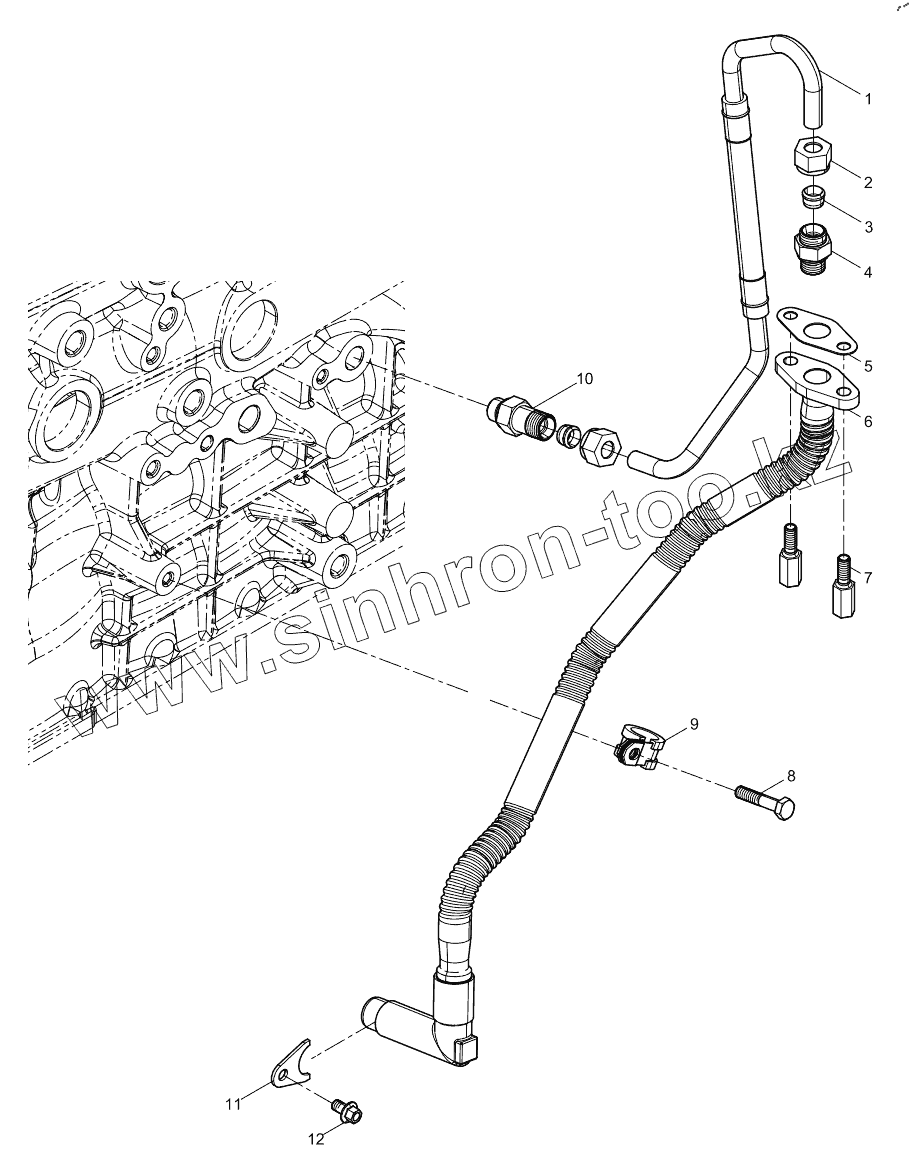 Каталог запасных частей к технике: Weichai WP13 DHP13Q3390. Turbocharger Oil Pipe Group