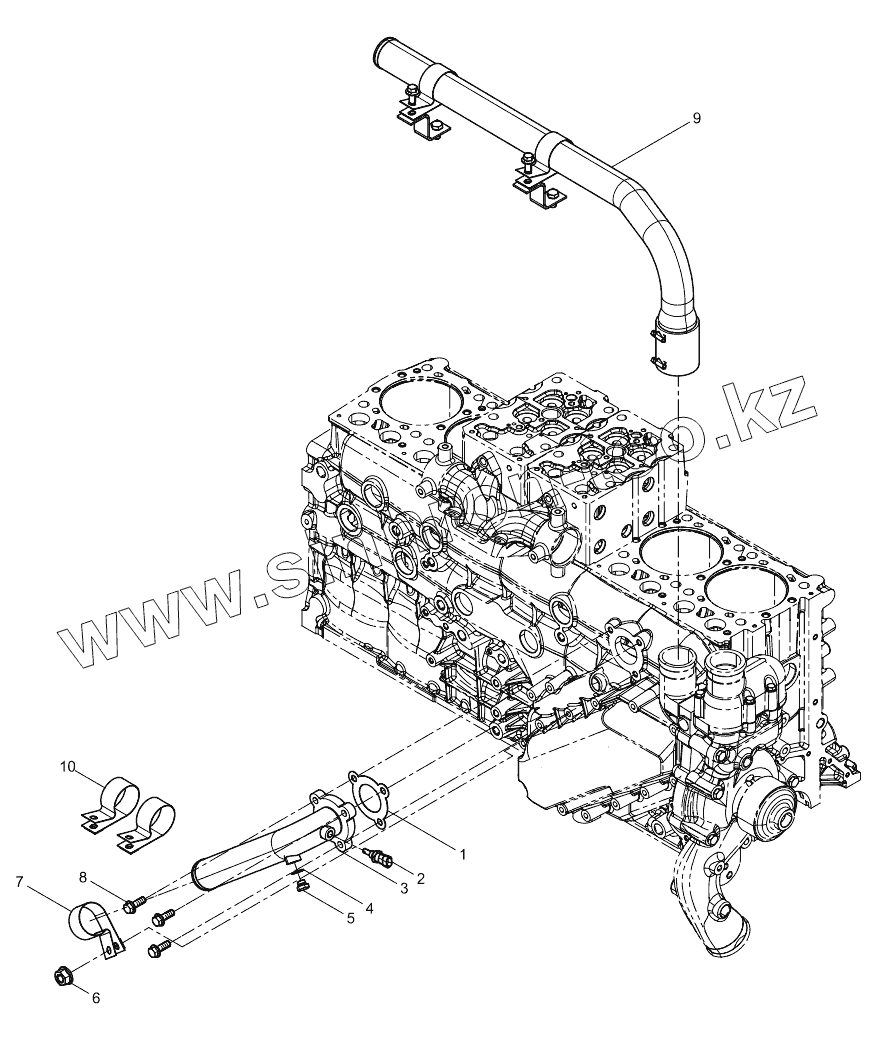 Каталог запасных частей к технике: Weichai WP13 DHP13Q3390. Water Pump Inlet Pipe Group