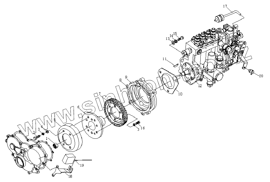 Каталог запасных частей к технике: Weichai WP2.1D18E2. Injection Pump and Mounting Assembly