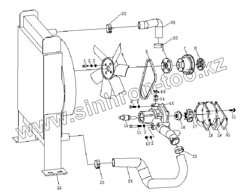 Каталог запасных частей к технике: Weichai WP2.1D18E2. Water Pump and Fan Assembly