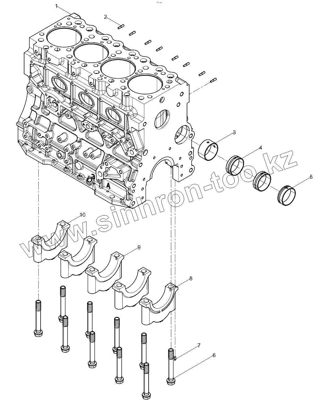 Каталог запасных частей к технике: Weichai WP4.1 DH4.1K0320. Crankcase pre-assembly