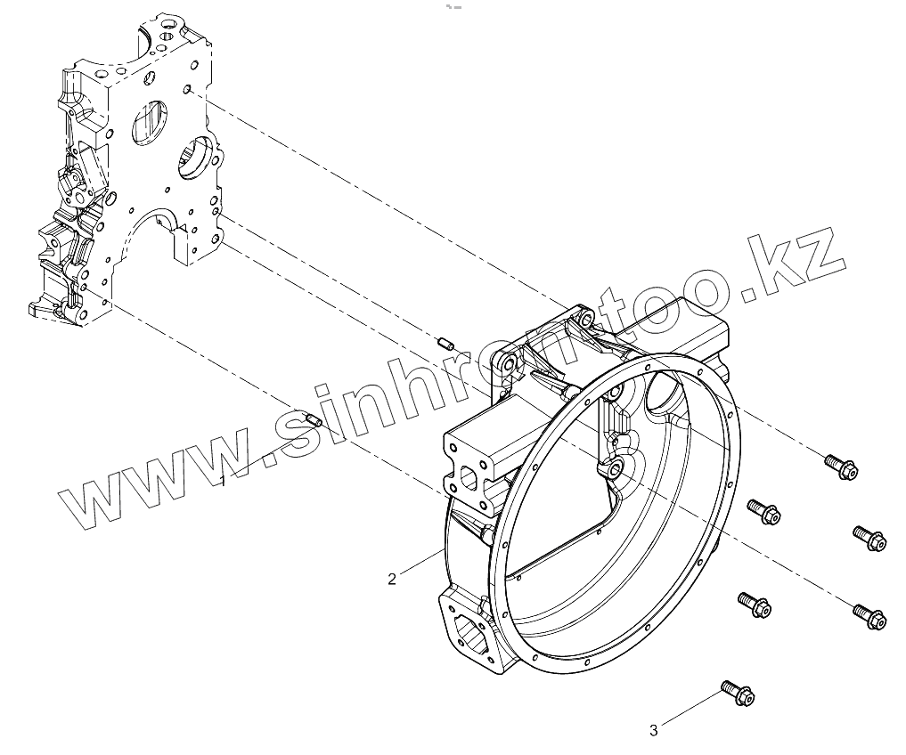 Каталог запасных частей к технике: Weichai WP4.1 DH4.1K0320. Flywheel Housing Group