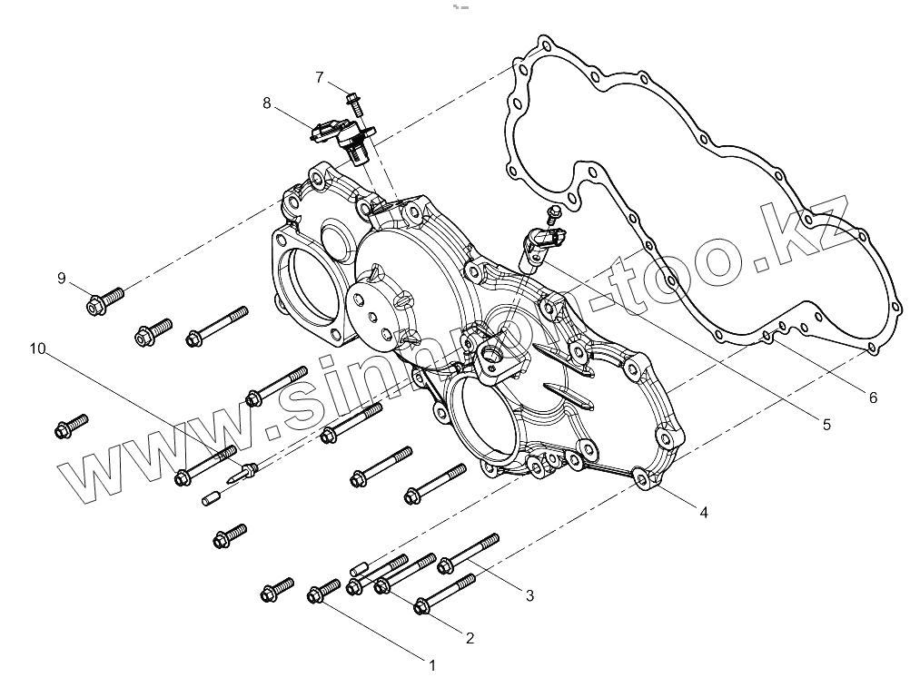 Каталог запасных частей к технике: Weichai WP4.1 DH4.1K0320. Gear Housing Cover Group