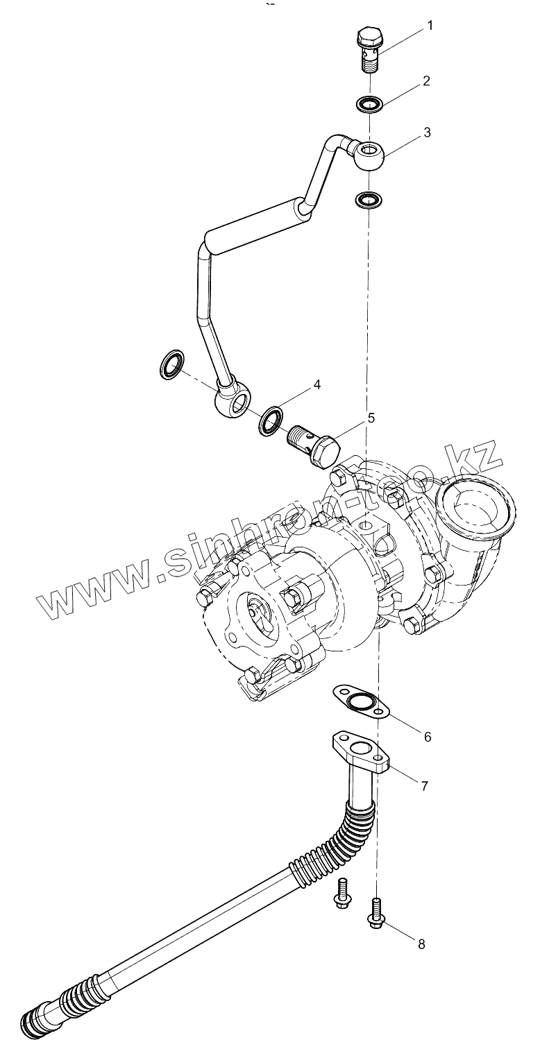 Каталог запасных частей к технике: Weichai WP4.1 DHN4.1Q0006. Turbocharger Oil Pipe Group