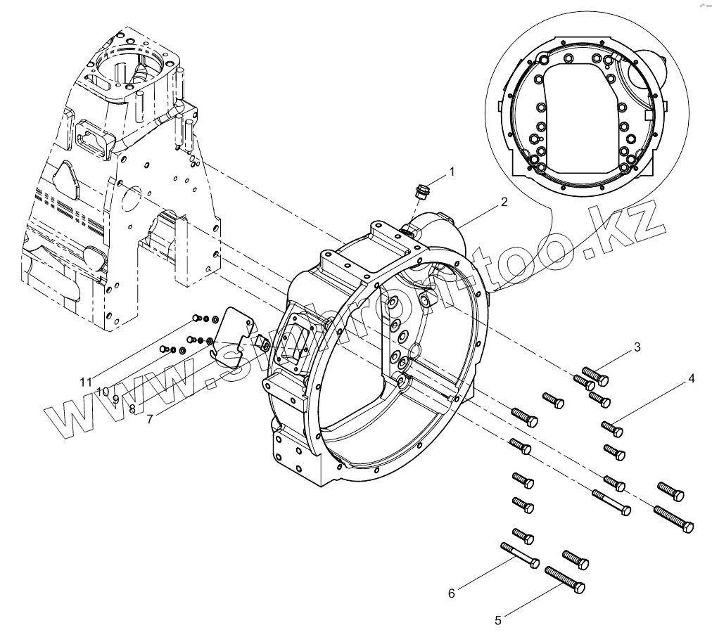 Каталог запасных частей к технике: Weichai WP6 DHB06D0018. Flywheel housing assembly