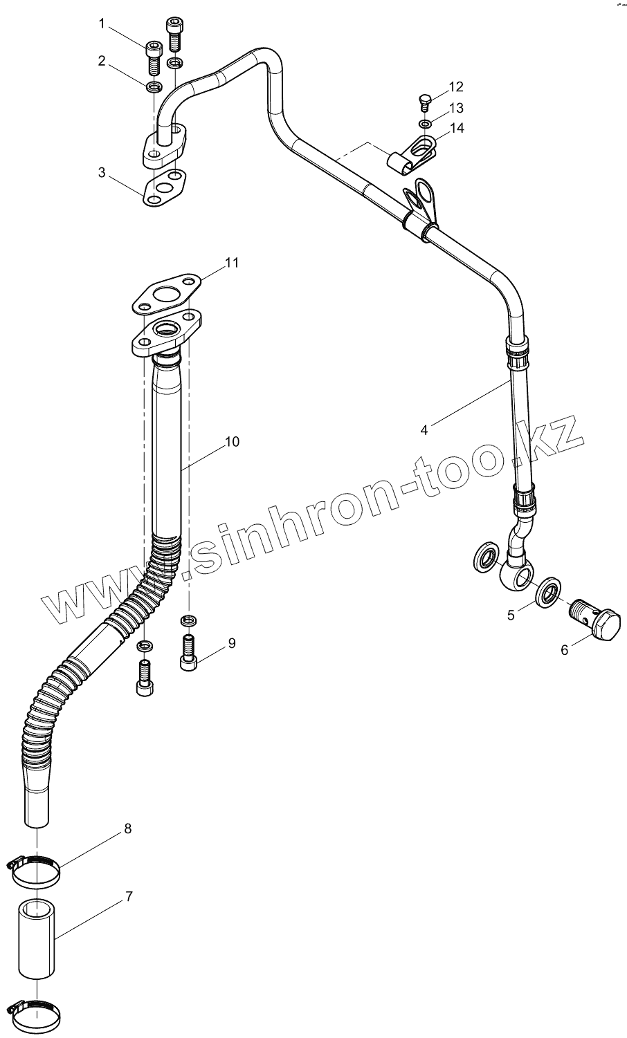 Каталог запасных частей к технике: Weichai WP6 DHB06D0018. Supercharger lubricating oil pipe assembly