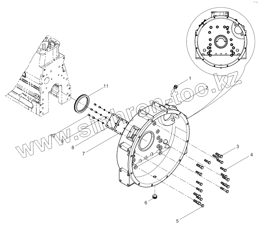 Каталог запасных частей к технике: Weichai WP6 DHB06G0131. Flywheel housing group