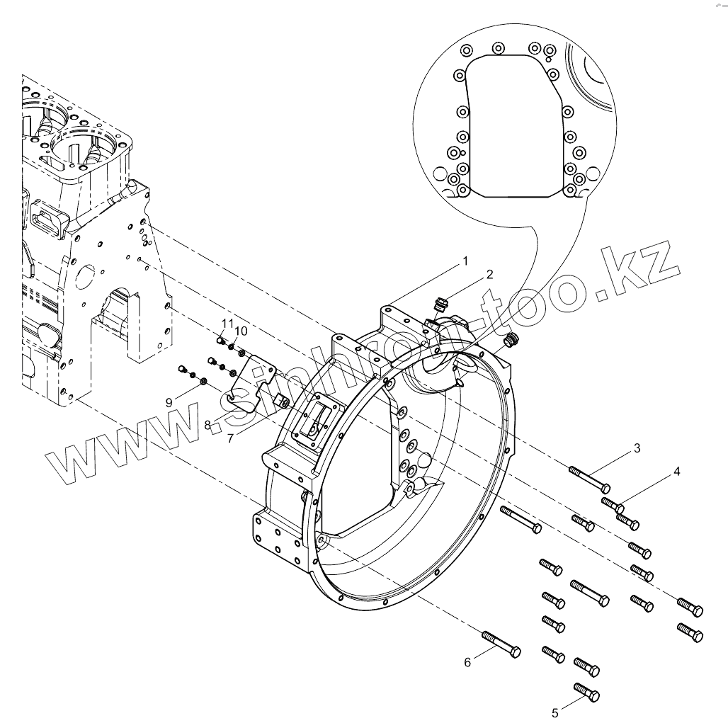 Каталог запасных частей к технике: Weichai WP6D132E200. Flywheel housing assembly