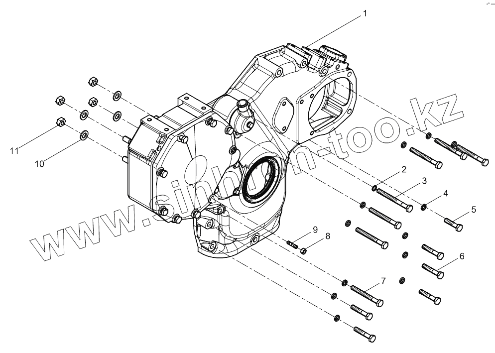 Каталог запасных частей к технике: Weichai WP6D132E200. Front wall cover assembly (gear end)