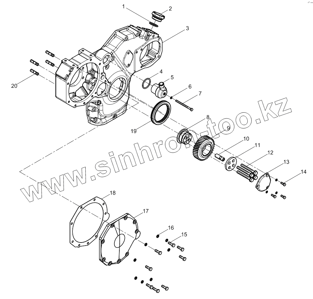 Каталог запасных частей к технике: Weichai WP6D132E200. Front wall cover subassembly (gear end)