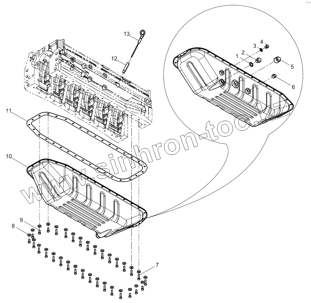 Каталог запасных частей к технике: Weichai WP6D132E200. Oil pan assembly