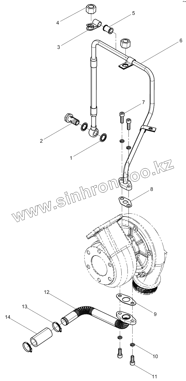 Каталог запасных частей к технике: Weichai WP6D132E200. Turbocharger Oil pipe Group