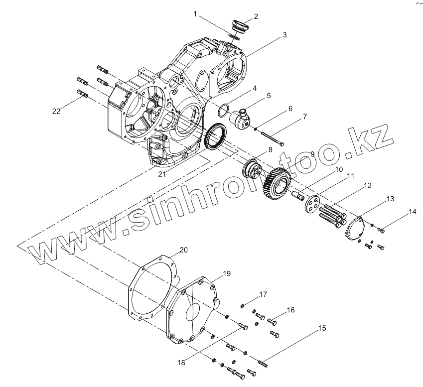 Каталог запасных частей к технике: Weichai WP6G125E22. Front wall cover subassembly (gear end)