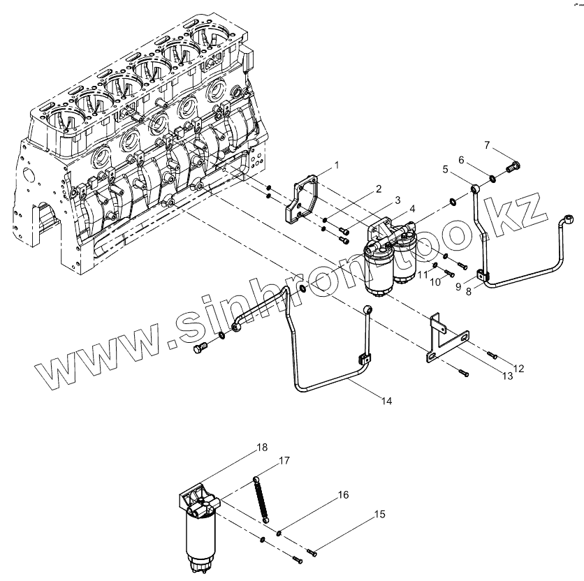 Каталог запасных частей к технике: Weichai WP6G125E22. Fuel filter assembly