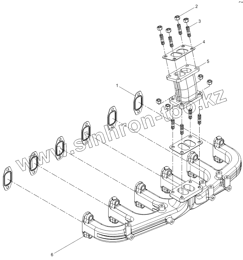 Каталог запасных частей к технике: Weichai WP6G140E22. Exhaust pipe assembly