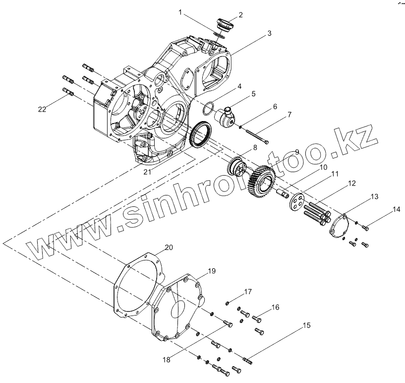 Каталог запасных частей к технике: Weichai WP6G140E22. Front wall cover subassembly (gear end)