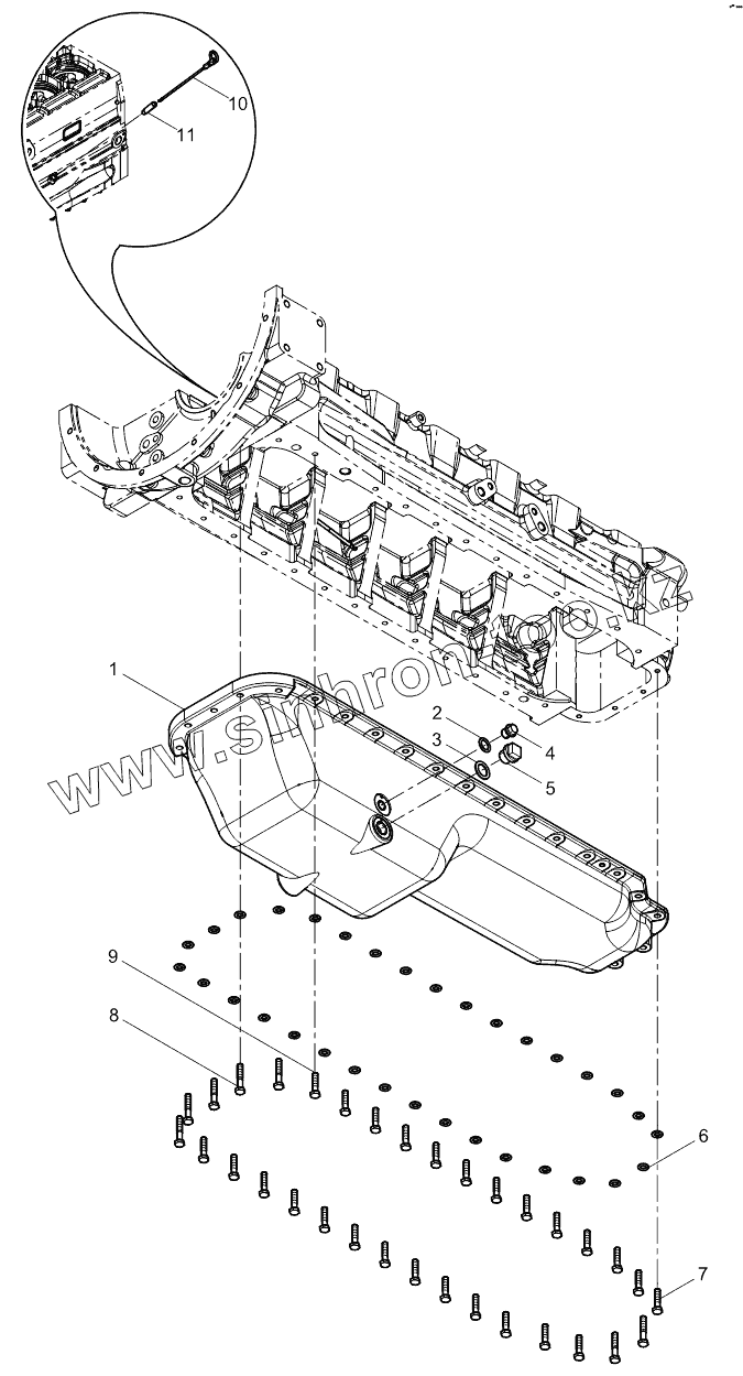 Каталог запасных частей к технике: Weichai WP6G140E22. Oil pan assembly
