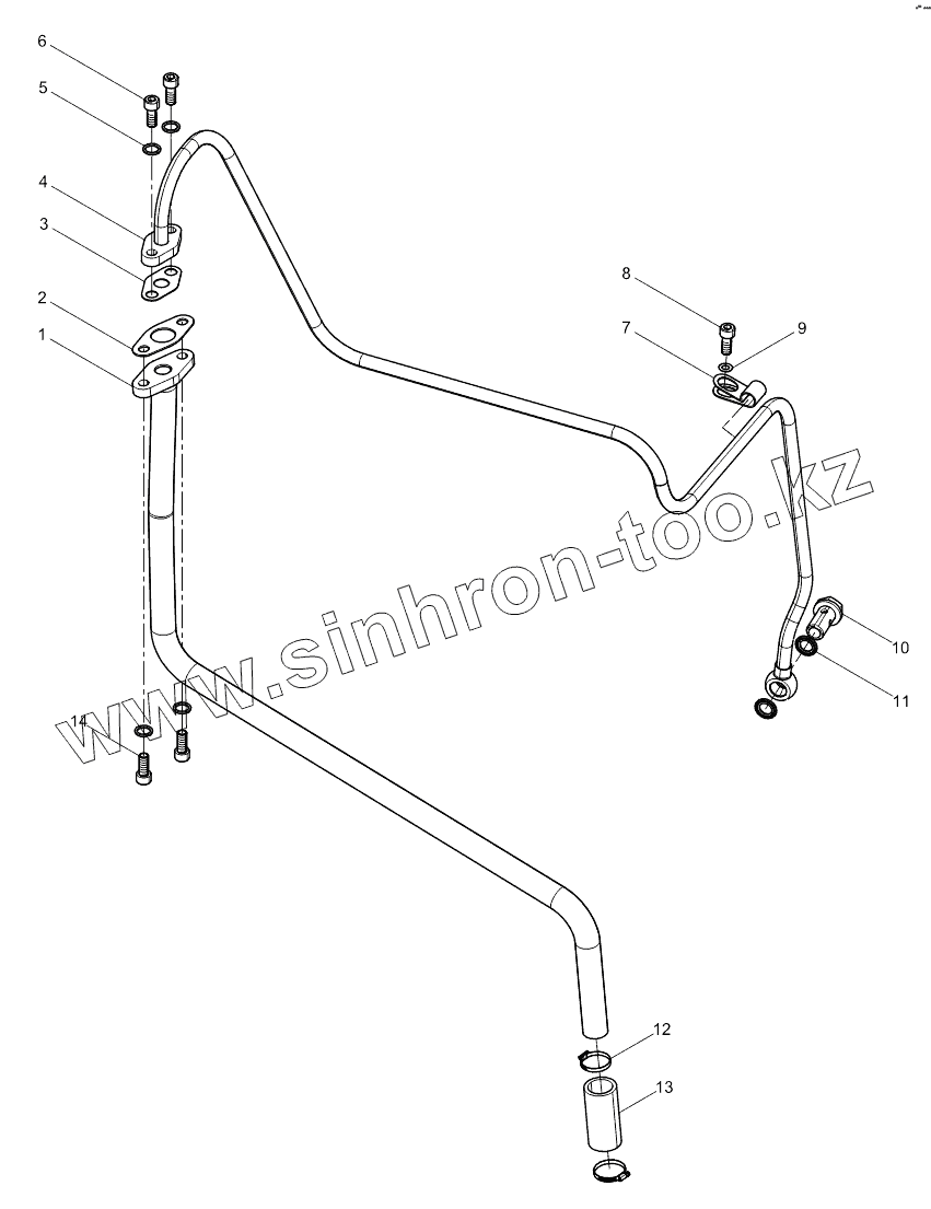 Каталог запасных частей к технике: Weichai WP6G140E22. Supercharger lube tube assembly