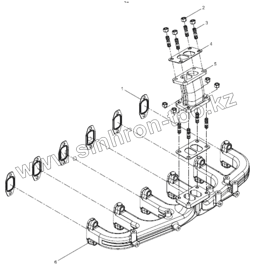 Каталог запасных частей к технике: Weichai WP6G175E201. Exhaust manifold assembly
