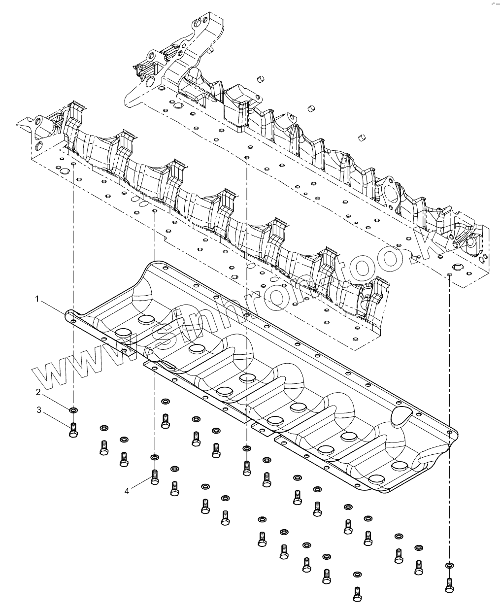 Каталог запасных частей к технике: Weichai WP7.300E51. Engine Block Reinforcing Plate Group