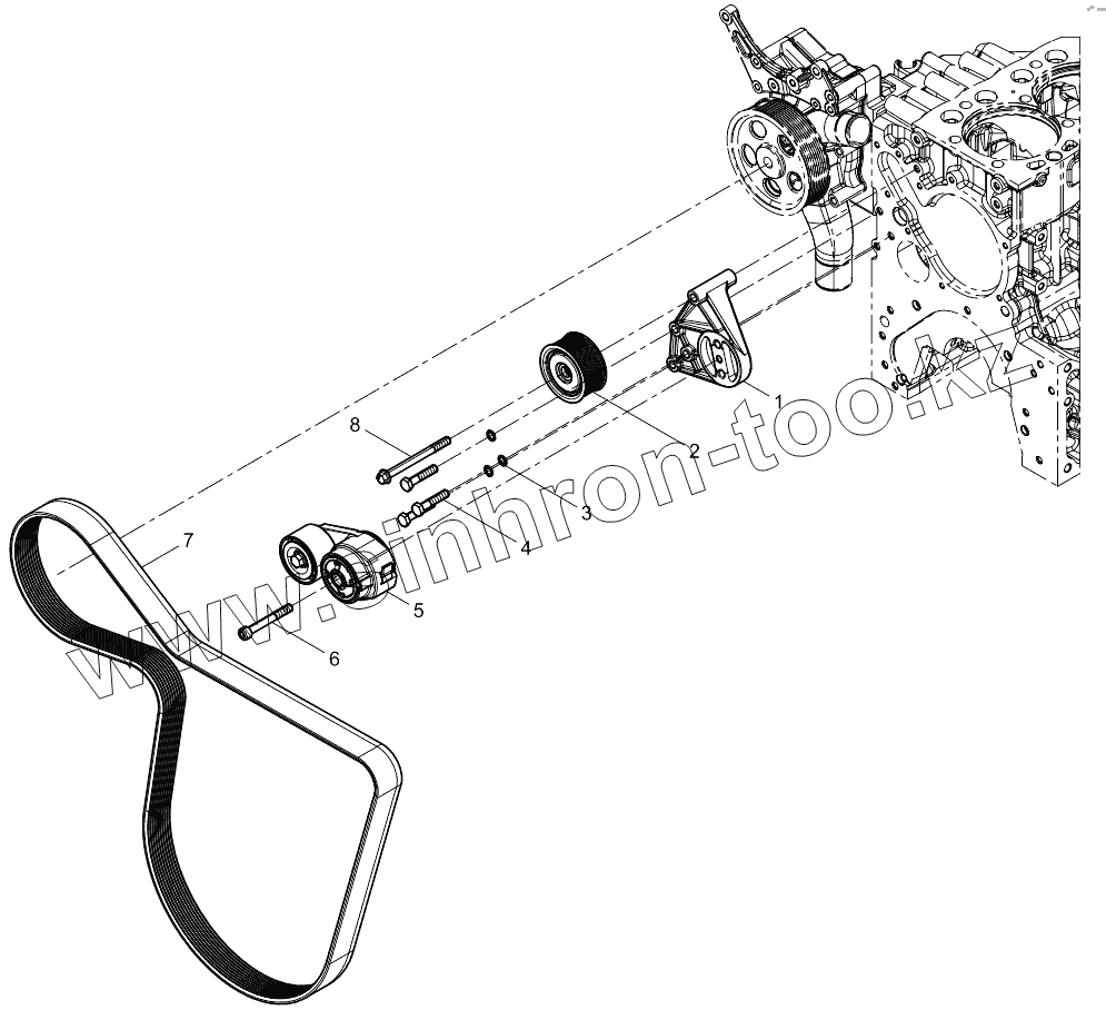 Каталог запасных частей к технике: Weichai WP7.300E51. Tensioner And Belt Group