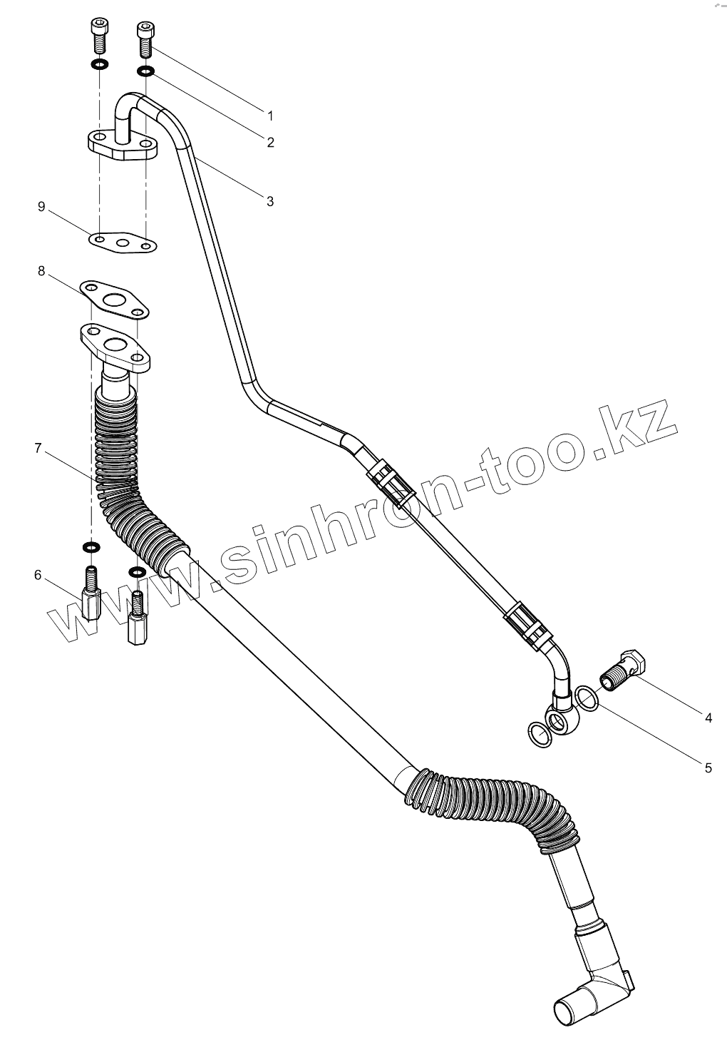 Каталог запасных частей к технике: Weichai WP7.300E51. Turbocharger Oil Pipe Group