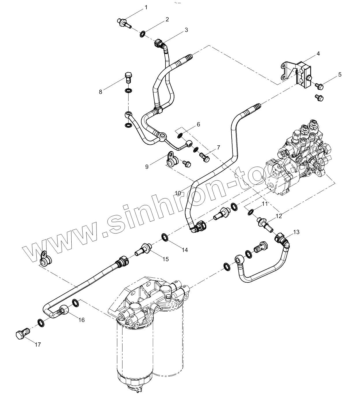 Каталог запасных частей к технике: Weichai WP7 DHP07T0067. Low Pressure Fuel Pipe Group
