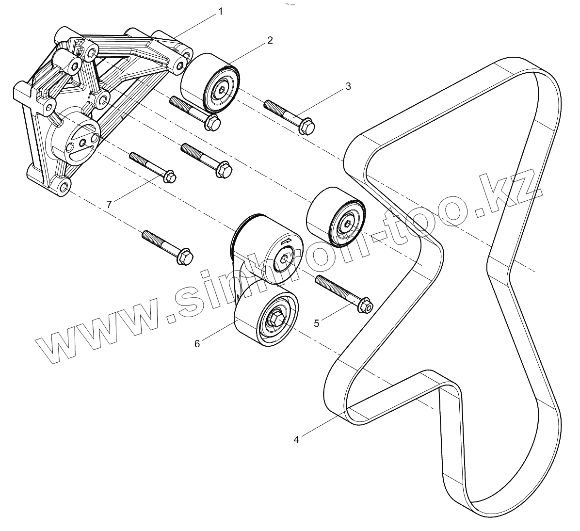 Каталог запасных частей к технике: Weichai WP7 DHP07T0067. Tensioner And Belt Group