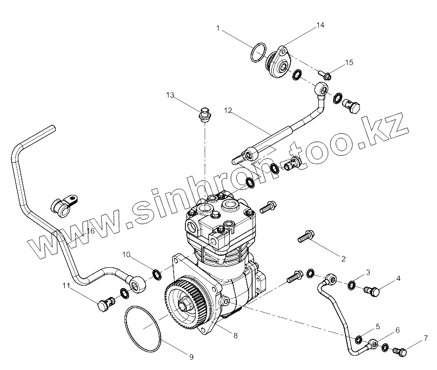 Каталог запасных частей к технике: Weichai WP8 DHP08Q0162. Air Compressor Group