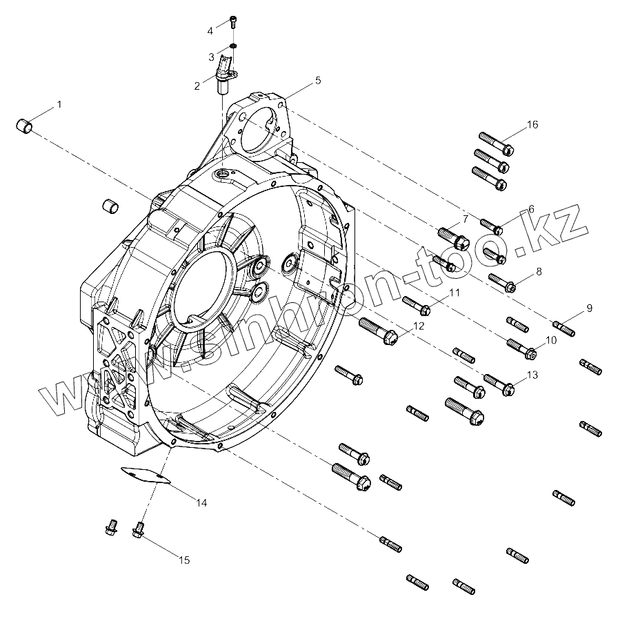 Каталог запасных частей к технике: Weichai WP8 DHP08Q0162. Flywheel Housing Group