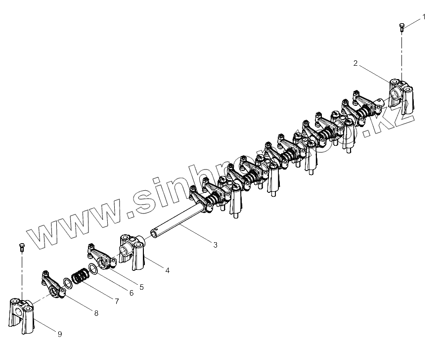 Каталог запасных частей к технике: Weichai WP8 DHP08Q0162. Integrated Rocker Arm Shaft Assembly