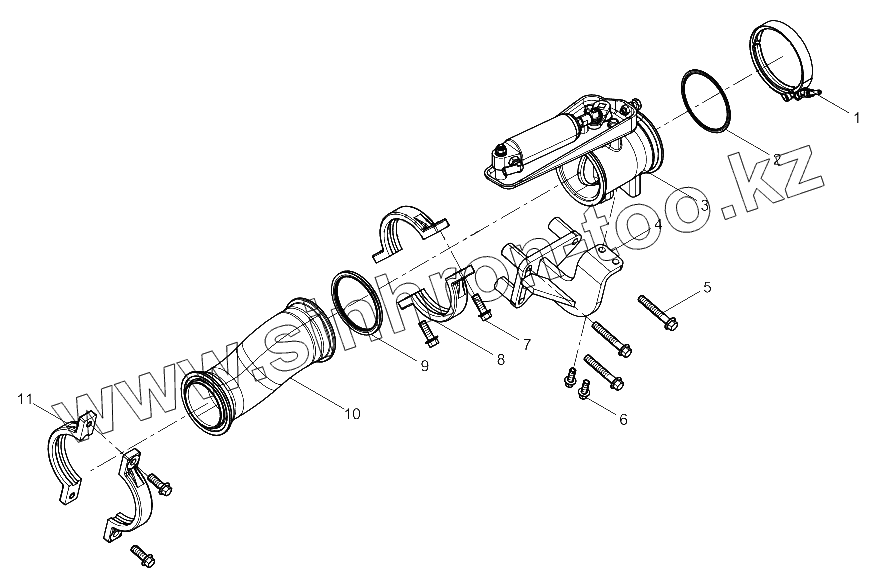 Каталог запасных частей к технике: Weichai WP8 DHP08Q0162. Rear Exhaust Manifold Group